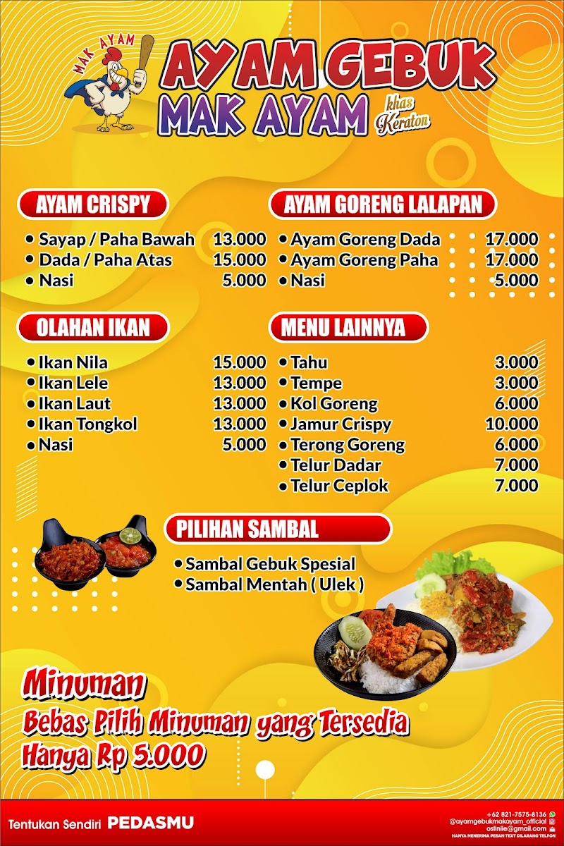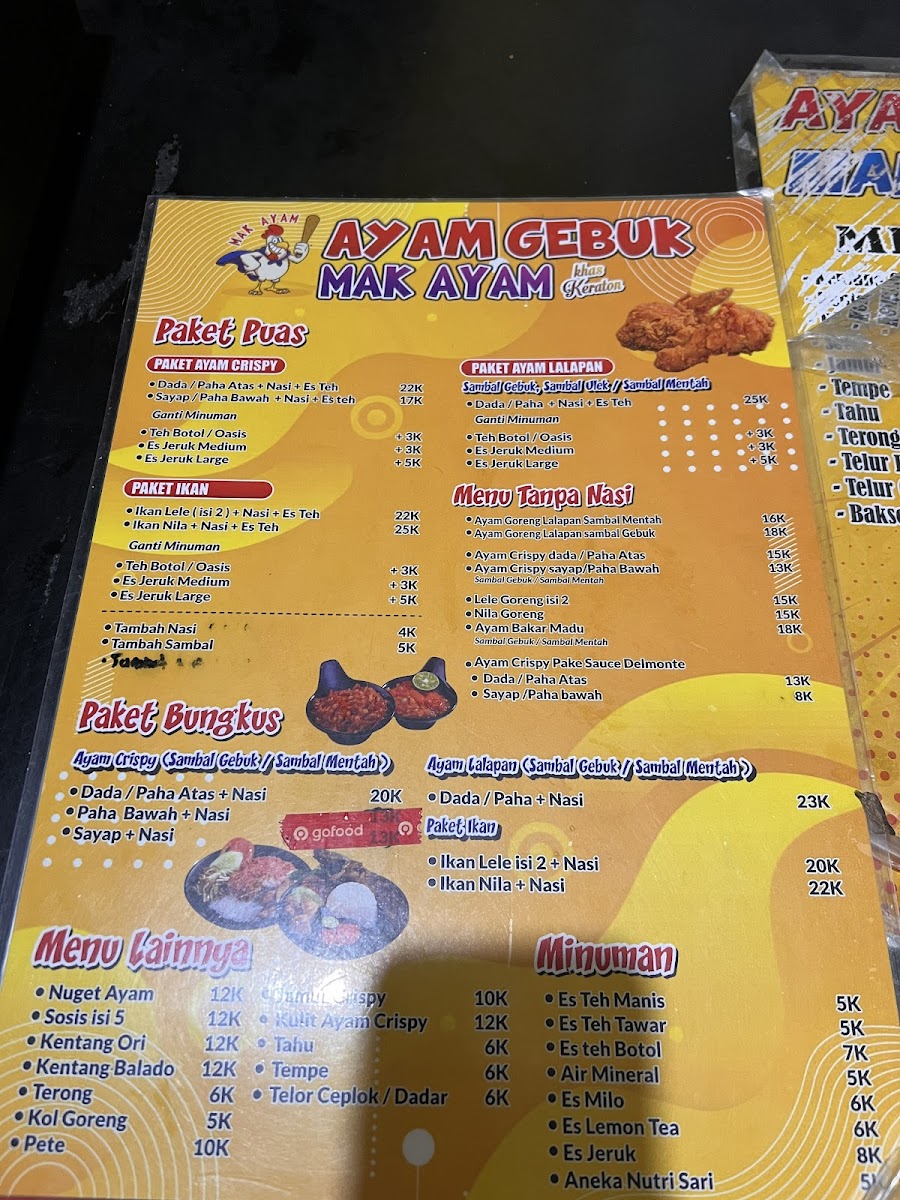 Whether you’re dropping by for a quick takeaway or a cozy dine-in experience, Ayam Gebuk Mak Ayam promises a flavorful adventure that will keep you coming back. With a menu that also boasts a selection of fish and prawn dishes, there's something for everyone here. Dive into the world of taste, and let Ayam Gebuk Mak Ayam transform your perception of Indonesian cuisine.